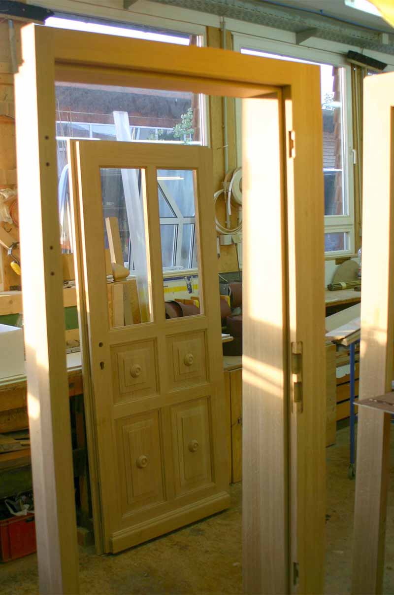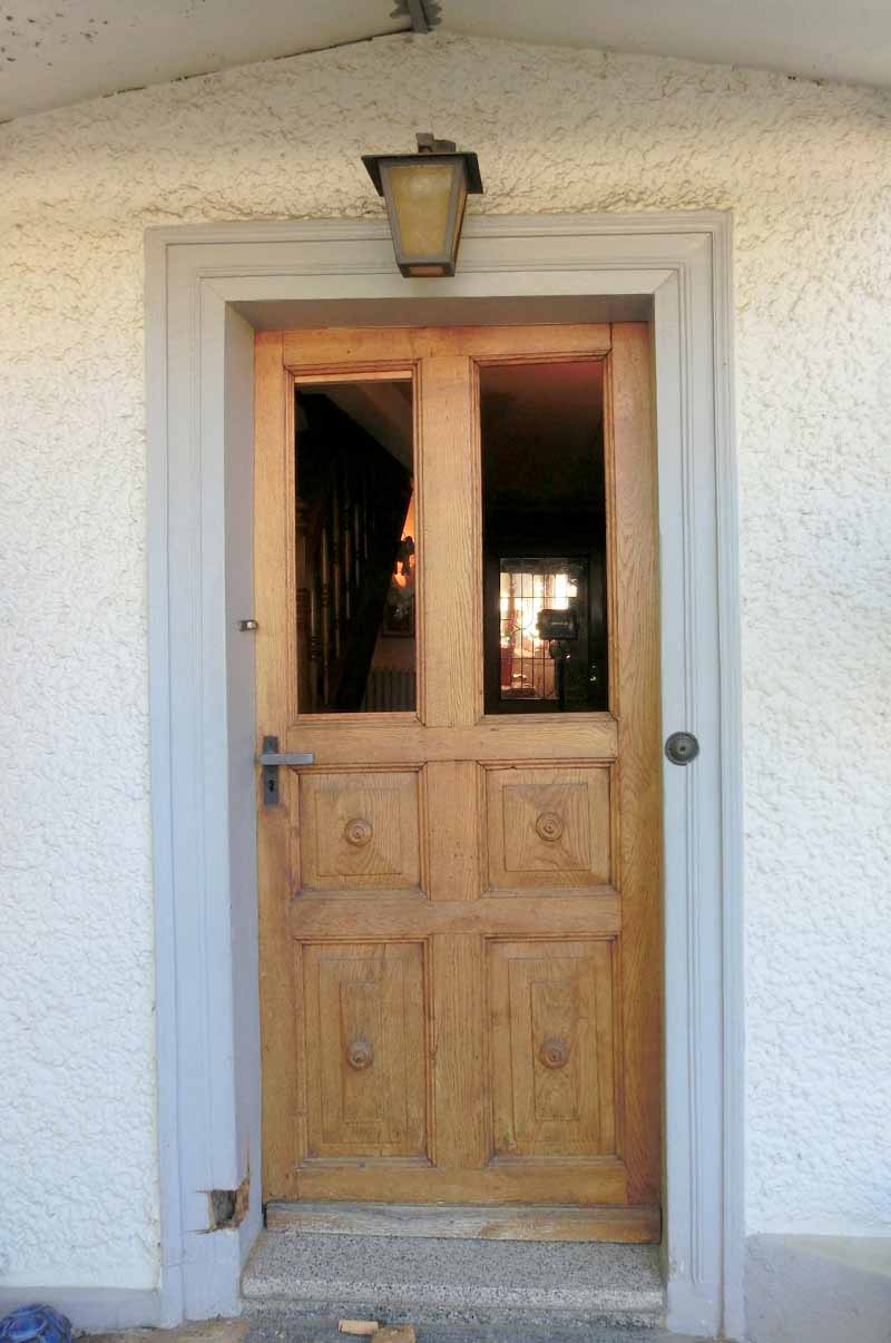 Ein Versuch, im Rahmen einer Restaurierung der Tür hier eine gute Lösung zu erzielen, wäre eher schwierig und teuer geworden. Gleichzeitig fand der Bauherr seine Tür sehr schön und hätte sie am liebsten gerne behalten.