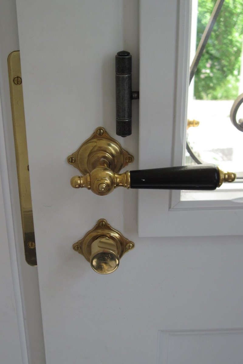 Die historische Gründerzeit-Haustür wurde von uns aufgedoppelt, mit Isolierglas und Mehrpunktverriegelung ausgestattet und in einen neuen Rahmen eingebaut. Der Rahmen enthält ein großes Oberlicht als Festverglasung.
