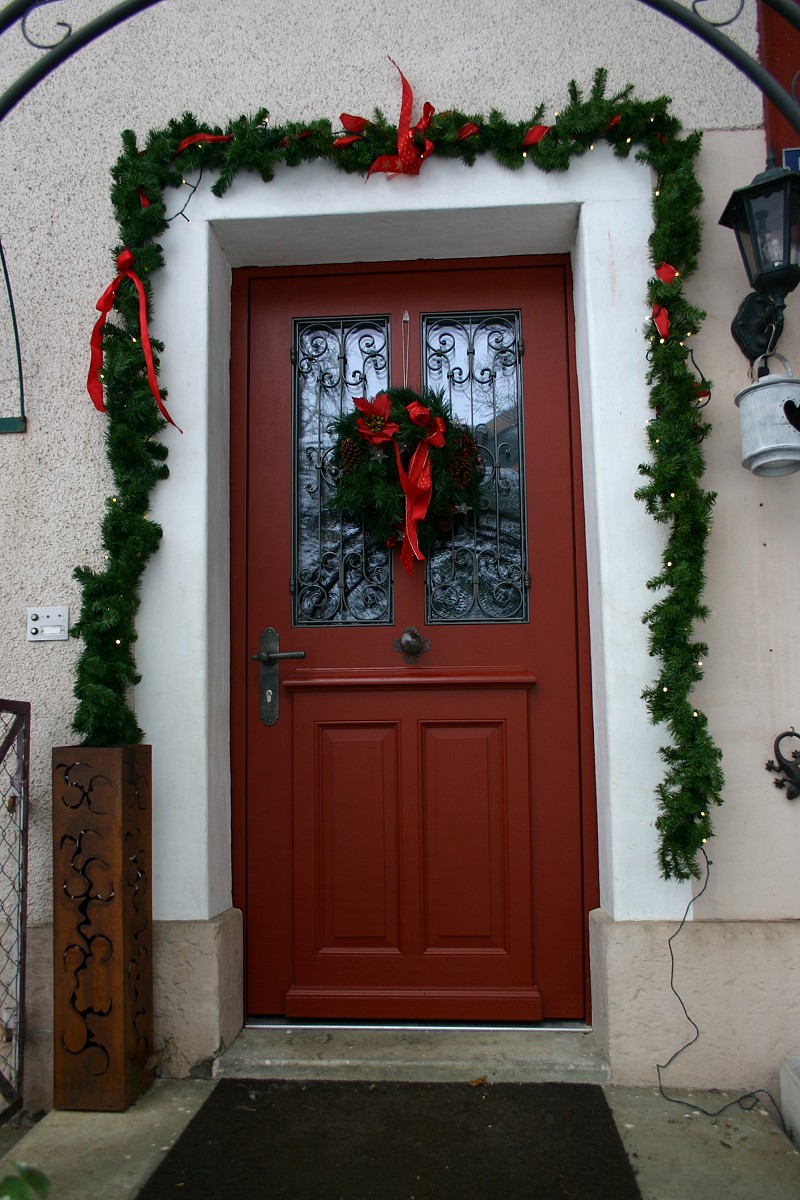 Restaurierung und Einbau einer einflügeligen Historismus-HaustürDie optimale Passform und die kräftige Farbfassung machen die Tür zu einem echten Hingucker. |